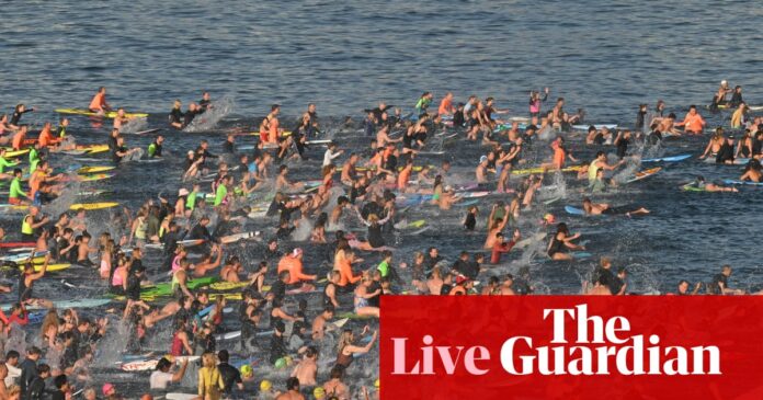 We have some photos from the Bondi paddle-out this morning, when surfers entered the water to pay tribute to the victims of Sunday’s Hanukah terror attack. The ABC reported thousands attended the event this morning.
