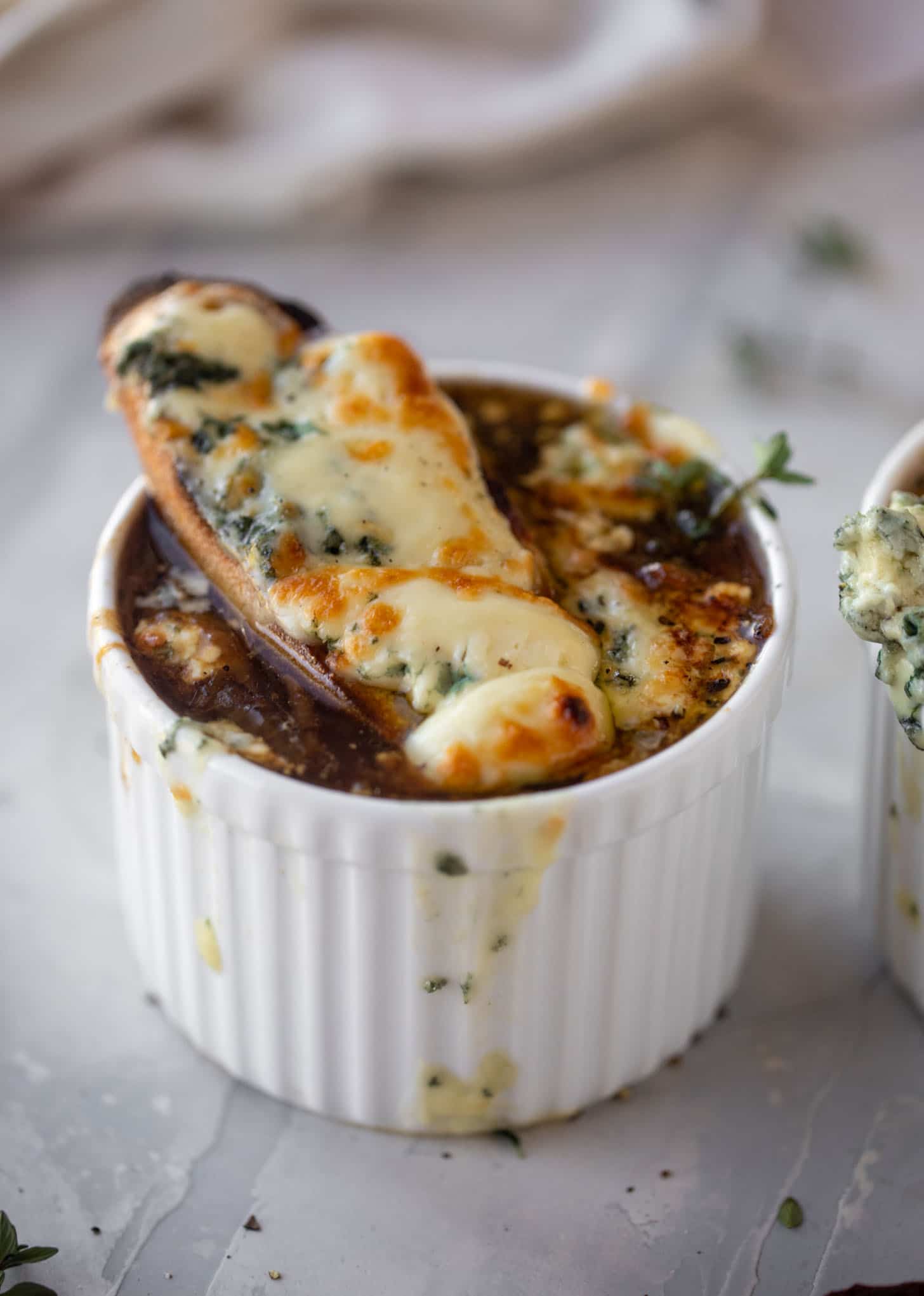 French onion soup with bruleed blue cheese.