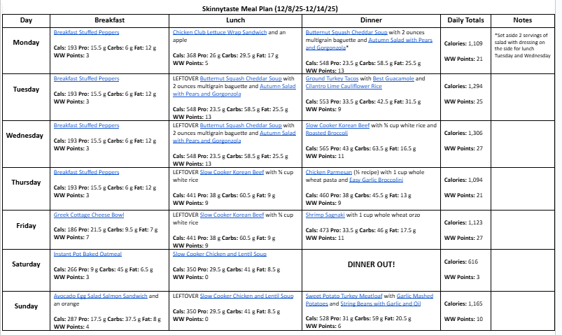 Free 7 Day Healthy Meal Plan (Dec. 8-14)