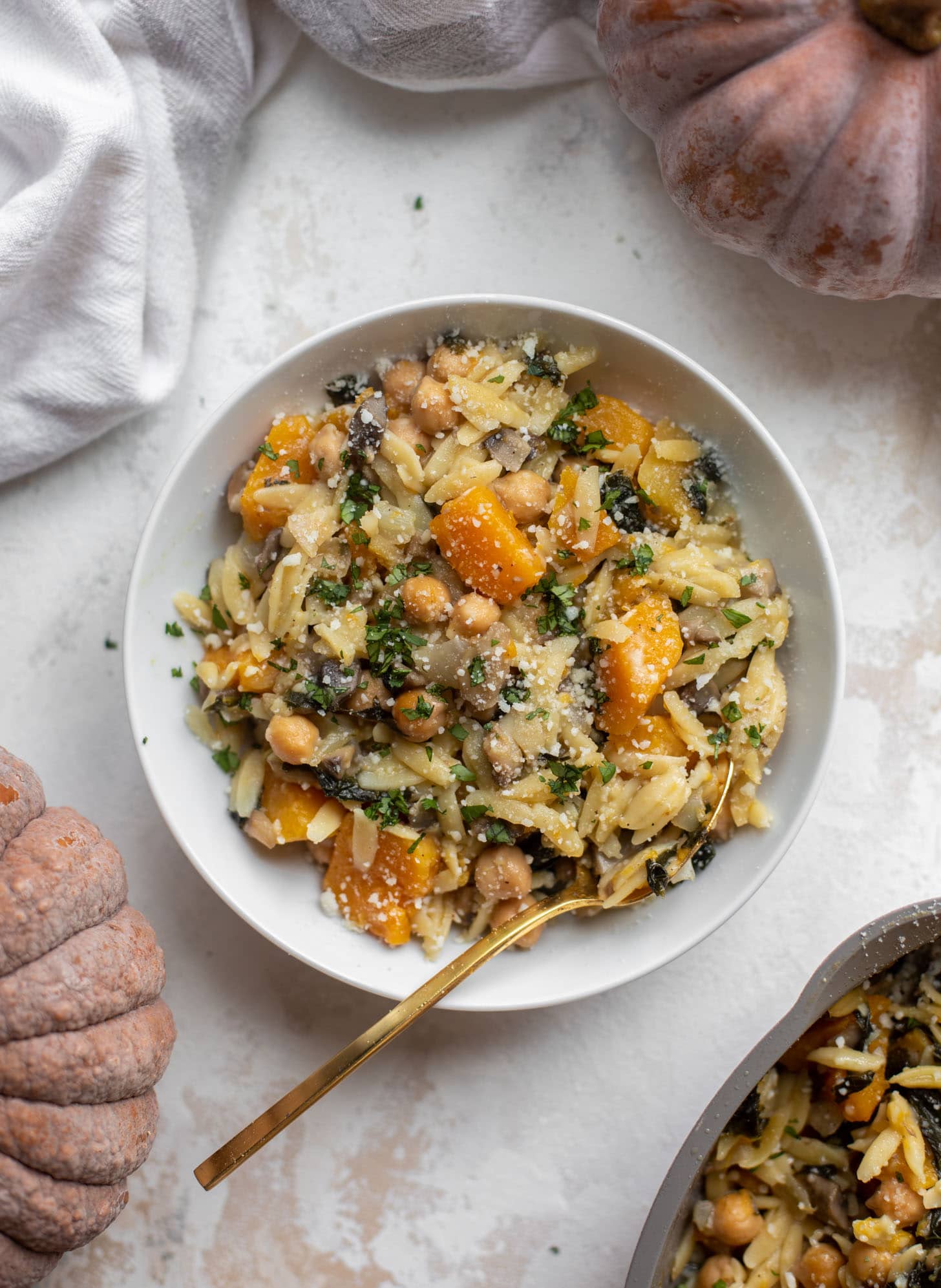 - One Pot Fall Vegetable Orzo with Chickpeas
