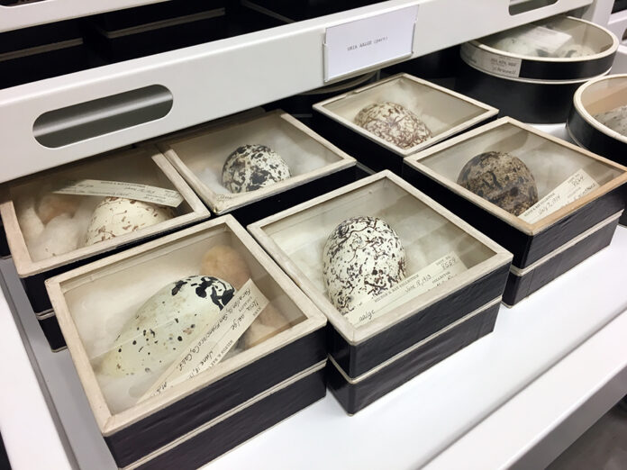 Some of the variety of egg shape, shell texture, color, and size within the MVZ collection. Photo by Geoff Manaugh.