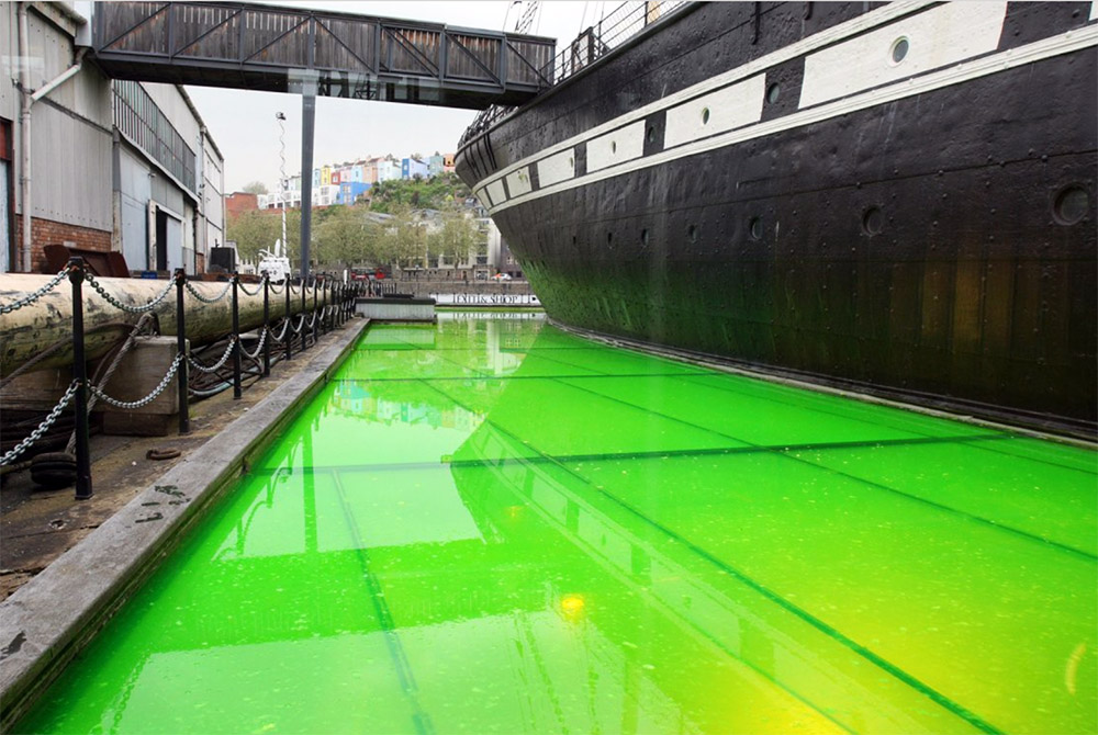 55,000 litres of lime green jelly surrounding Isambard Kingdom Brunel’s steamship, the SS Great Britain, by Bompas & Parr.