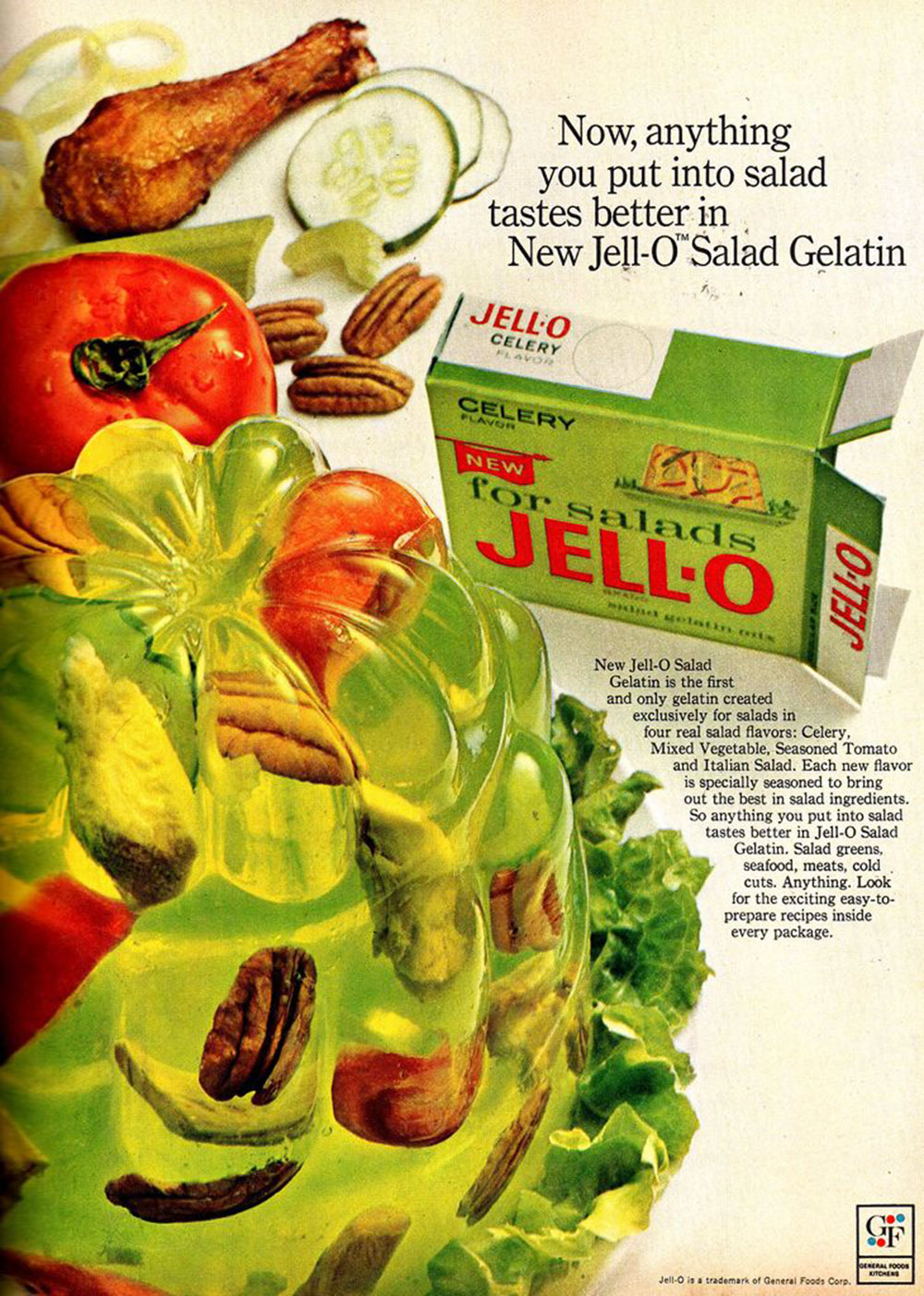 That all changed in the twentieth century, as jelly reinvented itself as Jell-O. Following the invention of powdered gelatin by a man better known for laying the first telegraph cables under the Atlantic and building the first practical steam locomotive made in America, Jell-O became the country’s most popular dessert. “Jell-O felt like this food of the future, that could really coincide with our collective fixation with science and progress,” Allie Rowbottom, a Jell-O heiress and author of a new memoir, Jell-O Girls, explained. She said that, by the 1950s, “you’d be hard-pressed to go to a potluck anywhere in America and not find a Jell-O mold of some sort.”